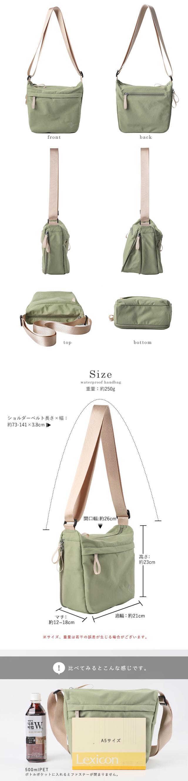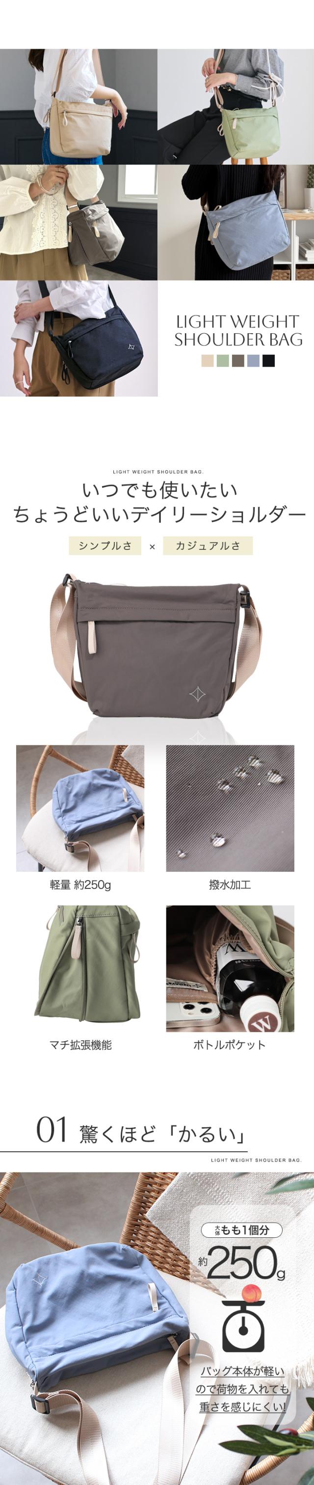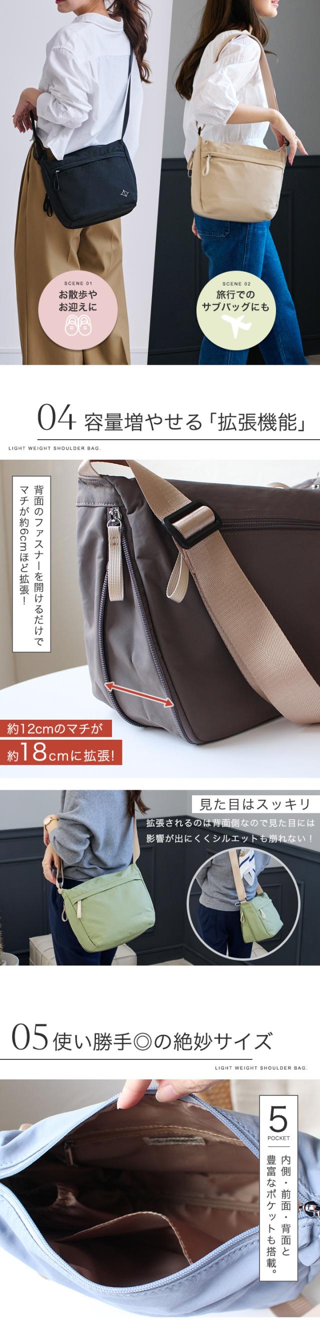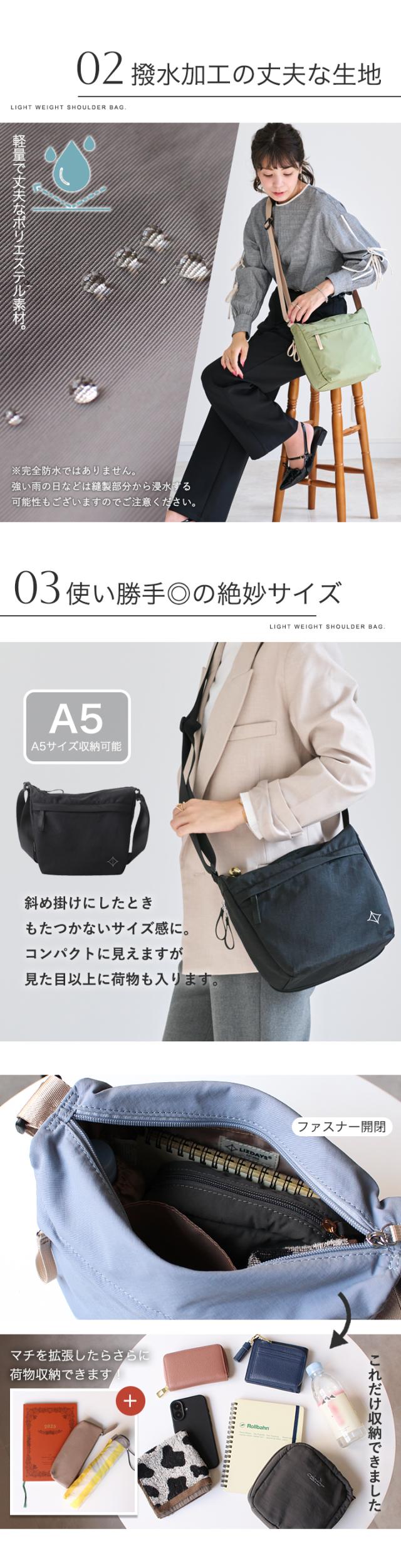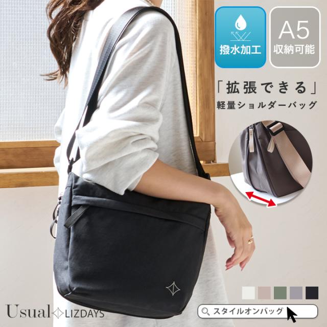 LIZDAYS ショルダーバッグ レディース 斜めがけ 大人 軽量 撥水 ショルダー バッグ ボトルポケット 収納 マチ拡張 容量増やせる a5 バッグ 旅行 仕事 可愛い シンプル リズデイズ スタイルオンバッグ【lz-70704】