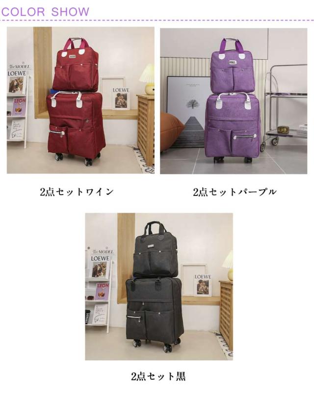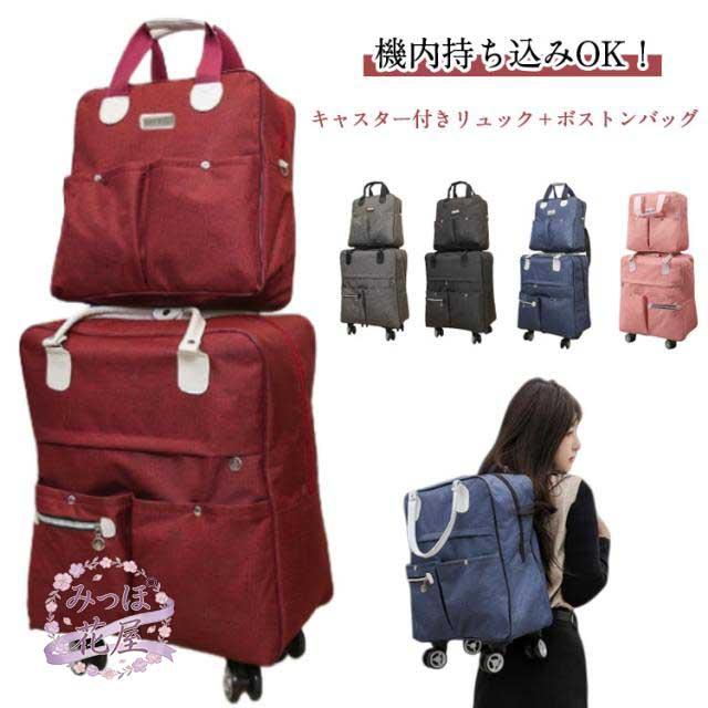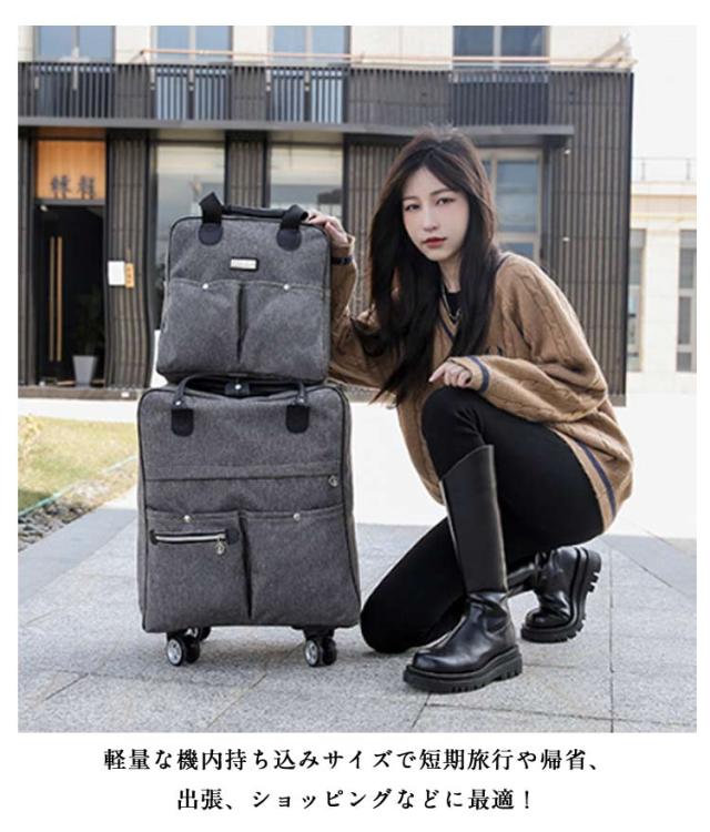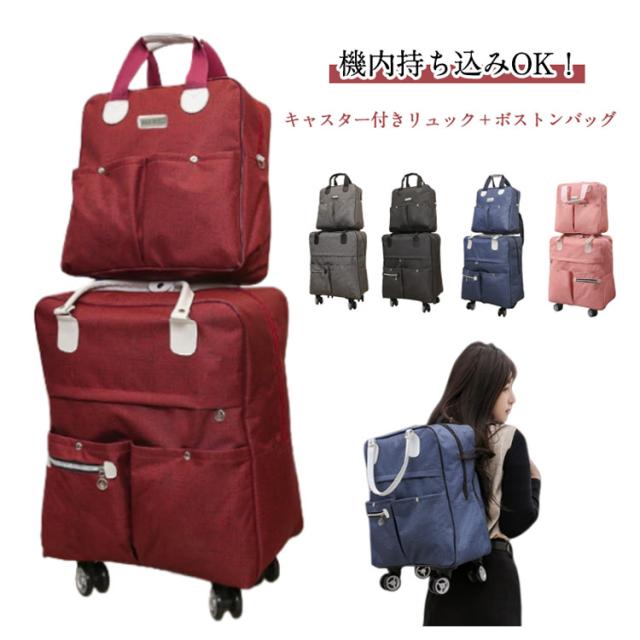 | 機内持ち込みOK!キャスター付きリュック+ボストンバッグ 4輪のキャスター搭載してスムーズで軽やかな走行を可能にし、 軽量な機内持ち込みサイズで短期旅行や帰省、出張、ショッピングなどに最適! 2WAY機内持ち込み可!荷物を楽に運べて移動もスムーズなキャリーに! 両手が自由でアクティプに動けるリュックに! 収納便利&省スペース! 使わないときはキャリー台に折りたたみ可能。 | |