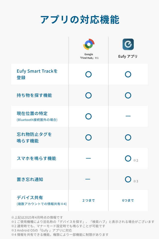 ・Eufy アプリ使用時の置き忘れ通知は、Bluetooth接続範囲を離れて約3分後に通知が届きます。使用環境によって通知が届くタイミングに差が出ます。