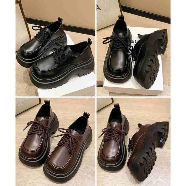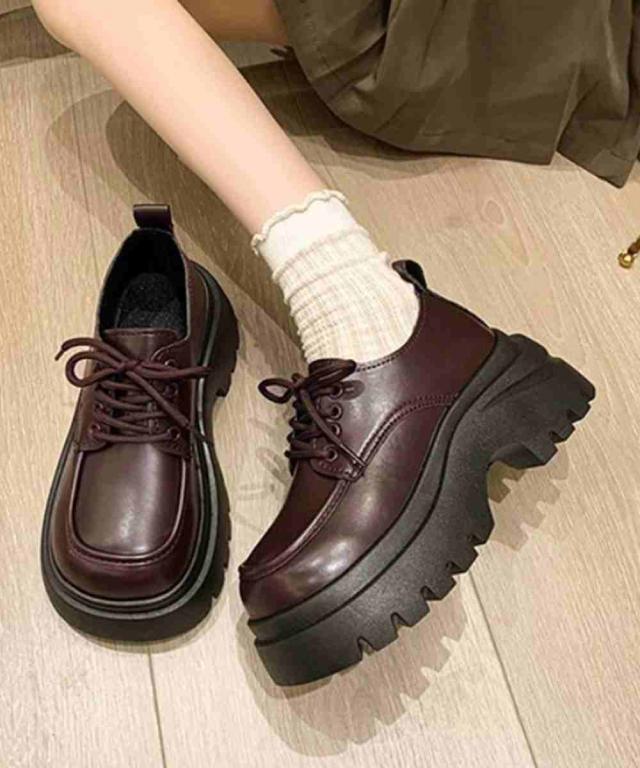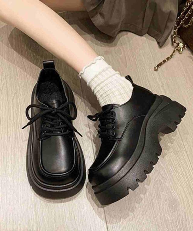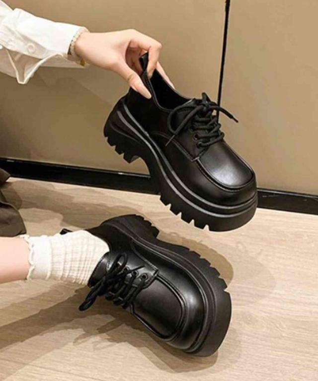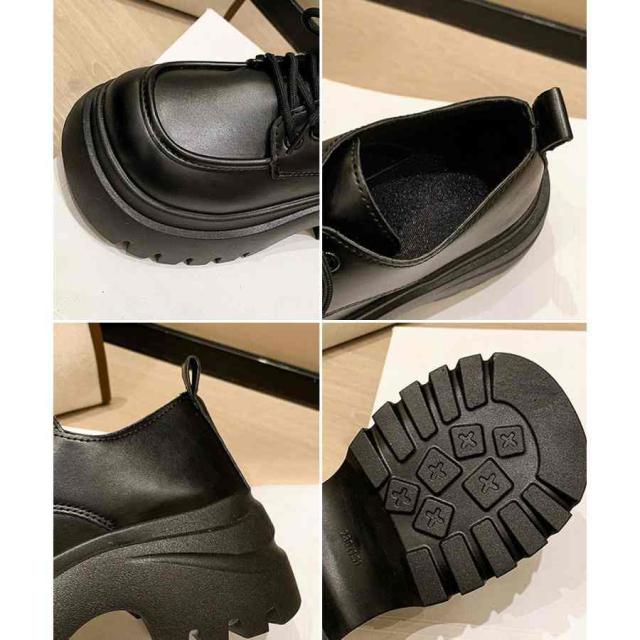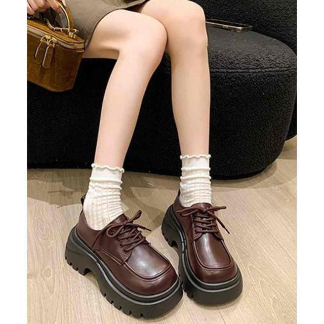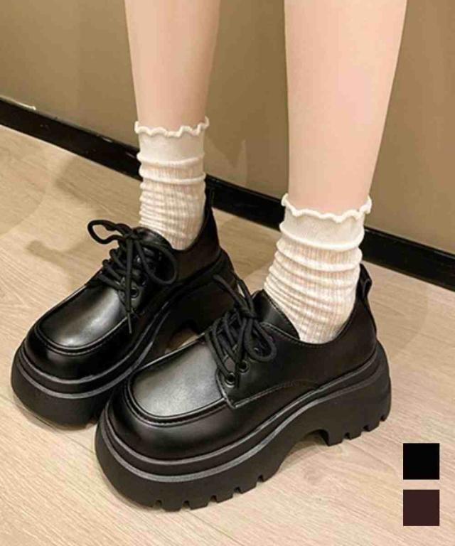 レディース ボリュームソール レースアップシューズ おしゃれ スクエアトゥ プラットフォームローファー美脚脚長疲れにくい