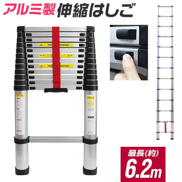 伸ばせば最長6.2mアルミ製伸縮ハシゴです。