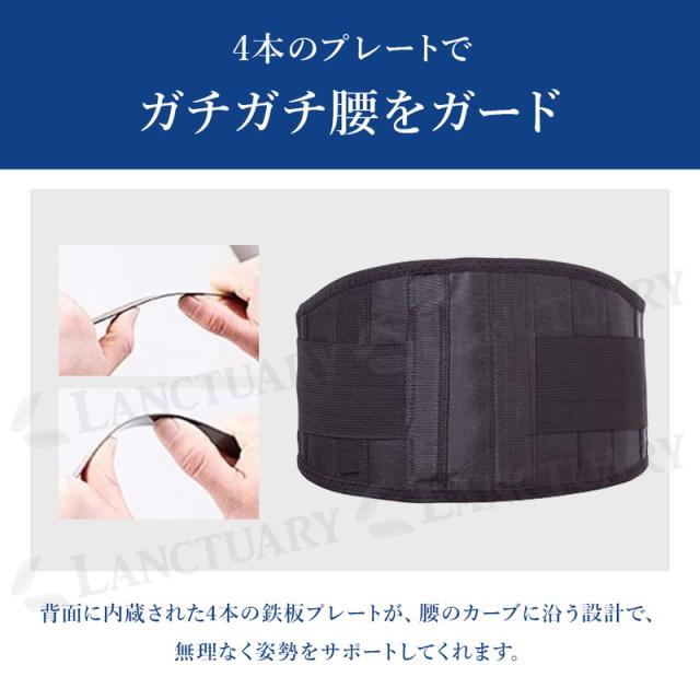頼れる固定力も自慢です。背面の4本の高強度プレートが腰のカーブに沿って支え、長時間のデスクワークや重作業時の負担を軽減。安定した姿勢をキープし、無理のない動きをサポートします。