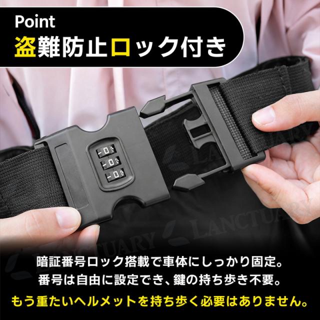 【盗難防止】暗証番号ロックでガッチリ固定。もう重いメットを持ち歩かない!番号の設定は自由!
