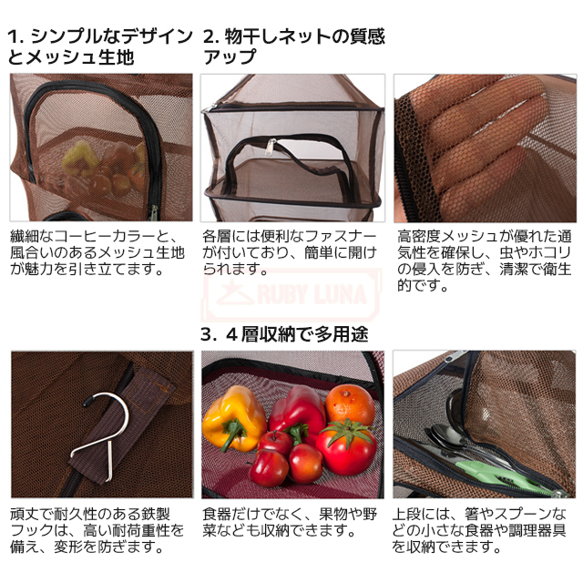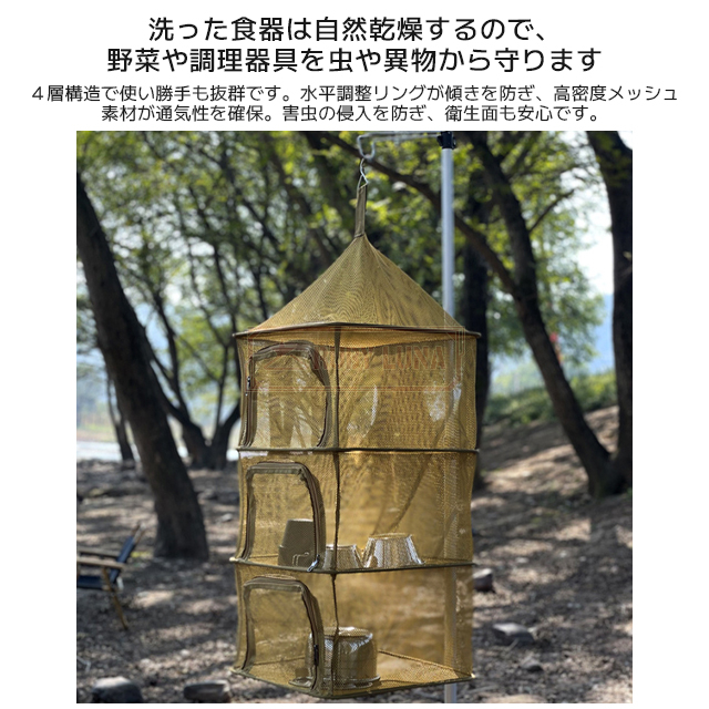 ハンギング ドライネット 折りたたみ 吊り下げ ドライネット 4層 組み立て簡単 キャンプ用 食器乾燥 衣類 干し網 干網 物干しネット 防虫ネット アウトドア キャンプ BBQ 収納 乾燥 超軽量 収納便利 室内 メッシュ素材 通気性 コンパクト 型崩れも防止 魚干し 野菜干し 洗濯物 さまざまなアイテム 多用途 冬新作 送料無料 新作