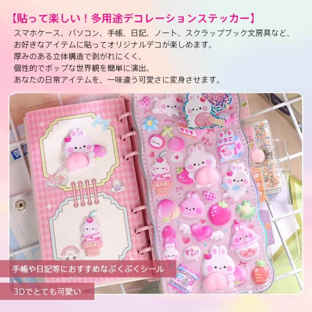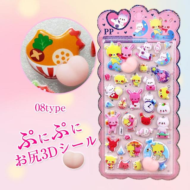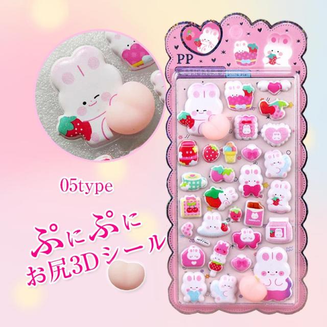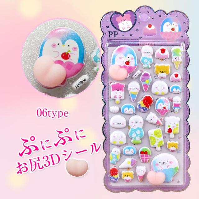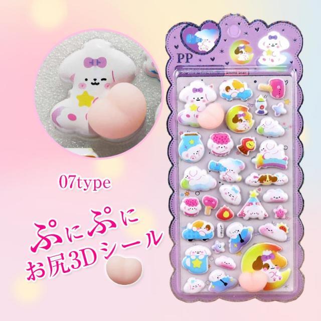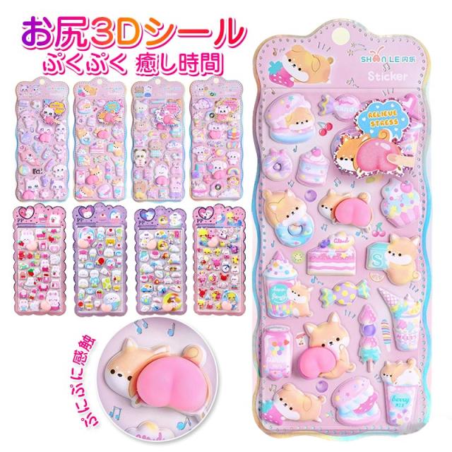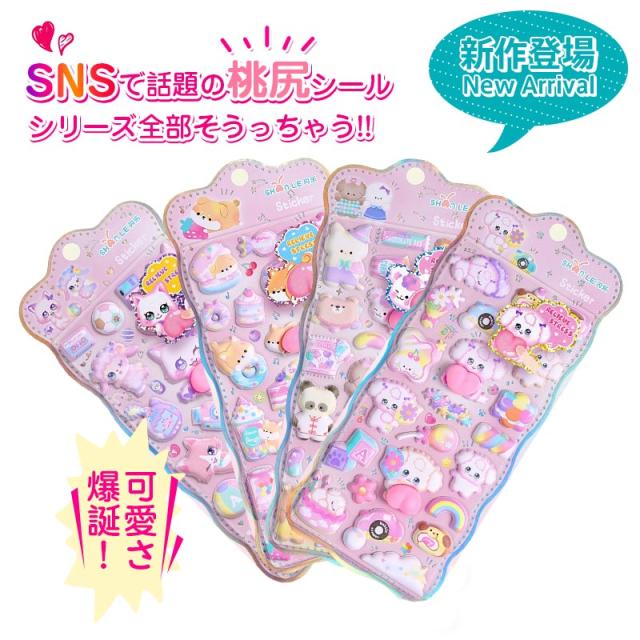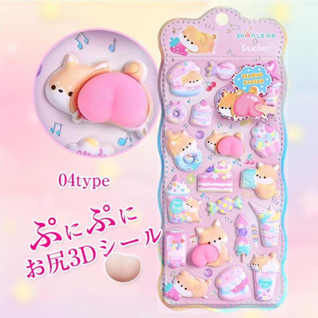 【SNSで話題のもも尻シール】お尻3Dぷくぷくシール 立体デコ キャラクター 可愛い 癒し スマホケース 手帳 ノート デコレーション Sugar Puff 4枚入 柄ランダム発送
