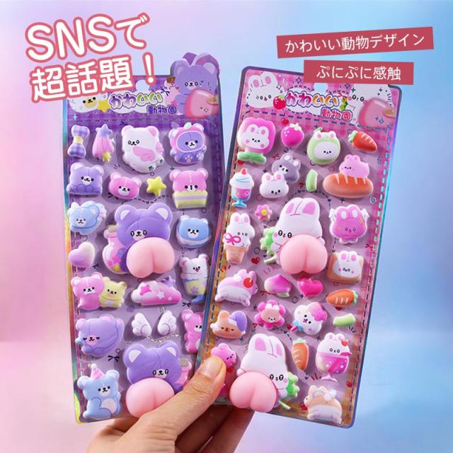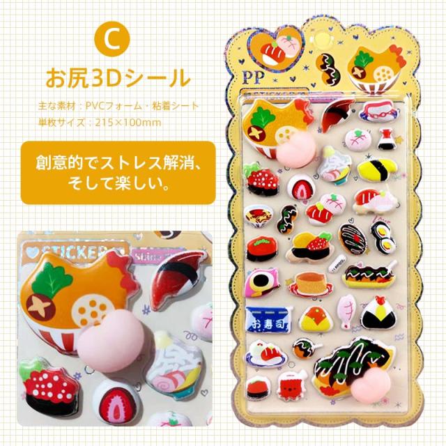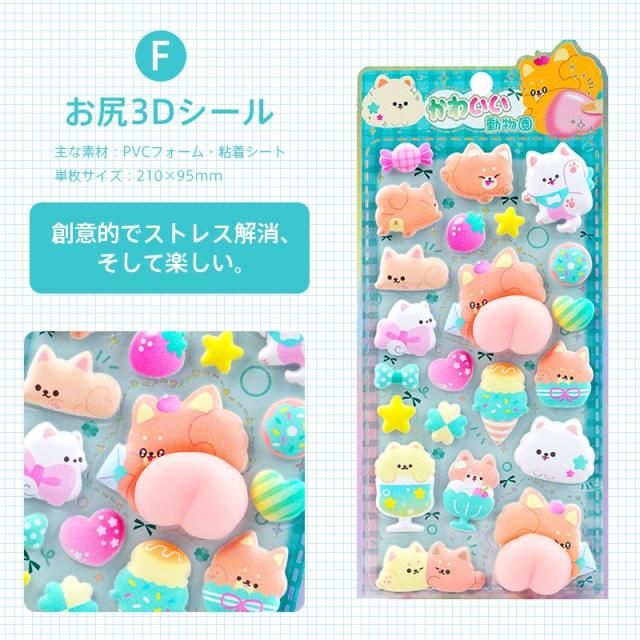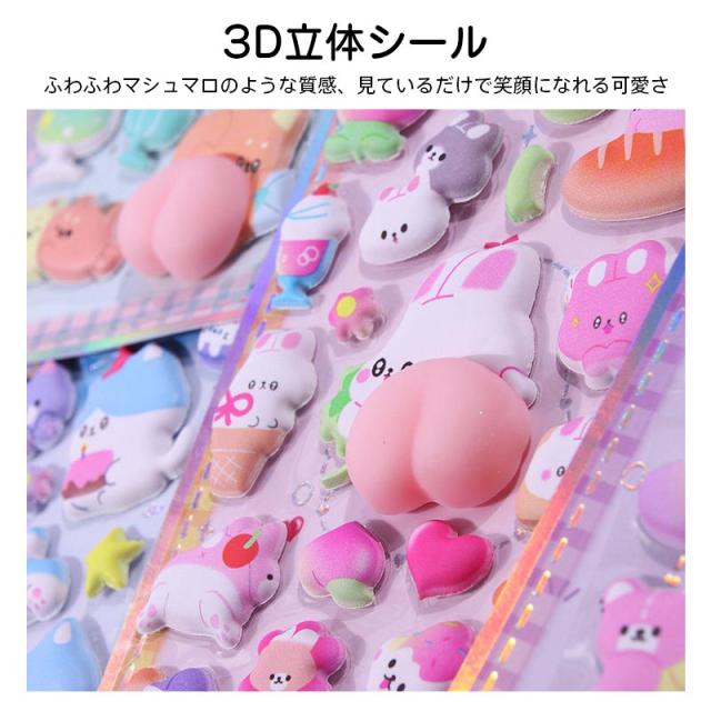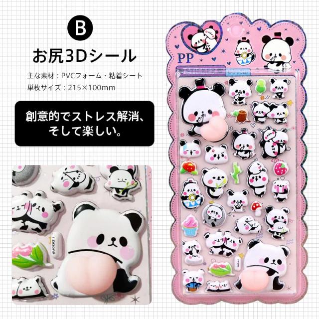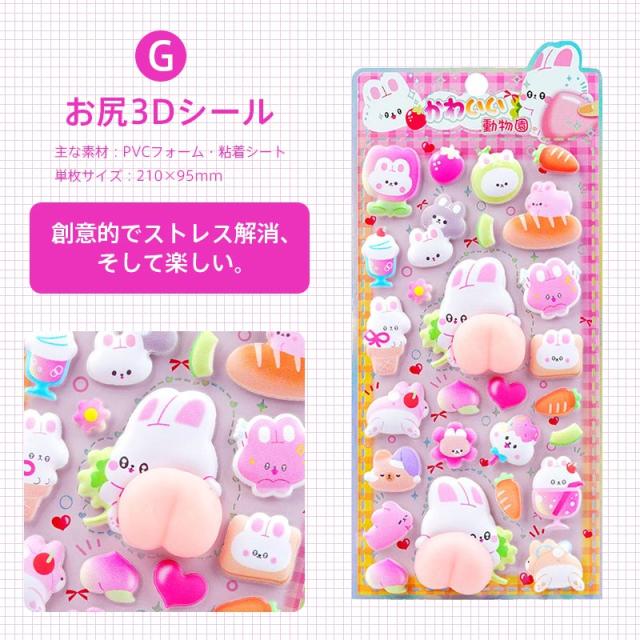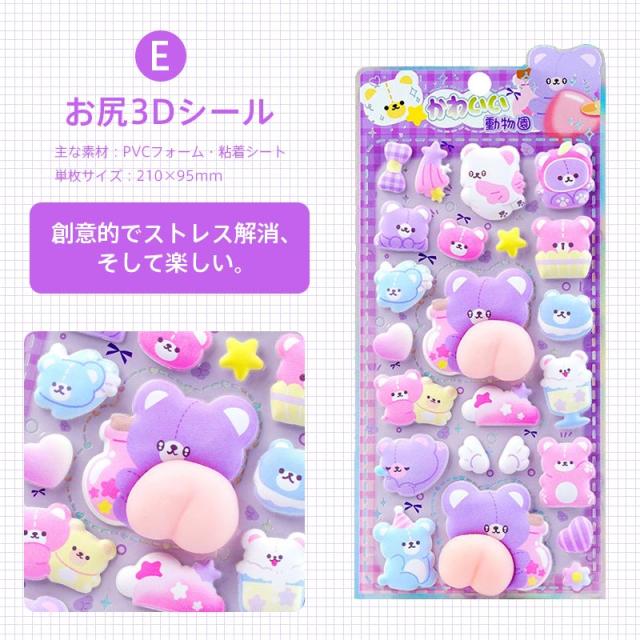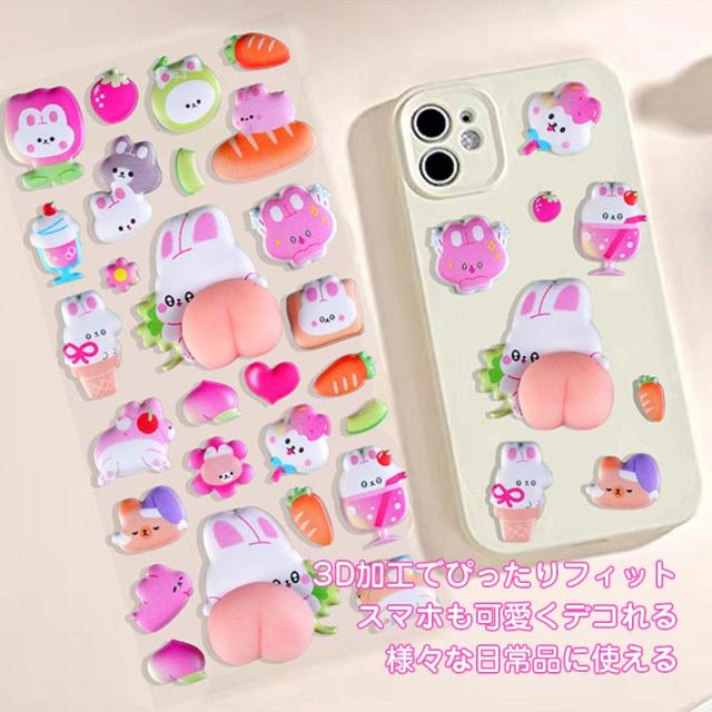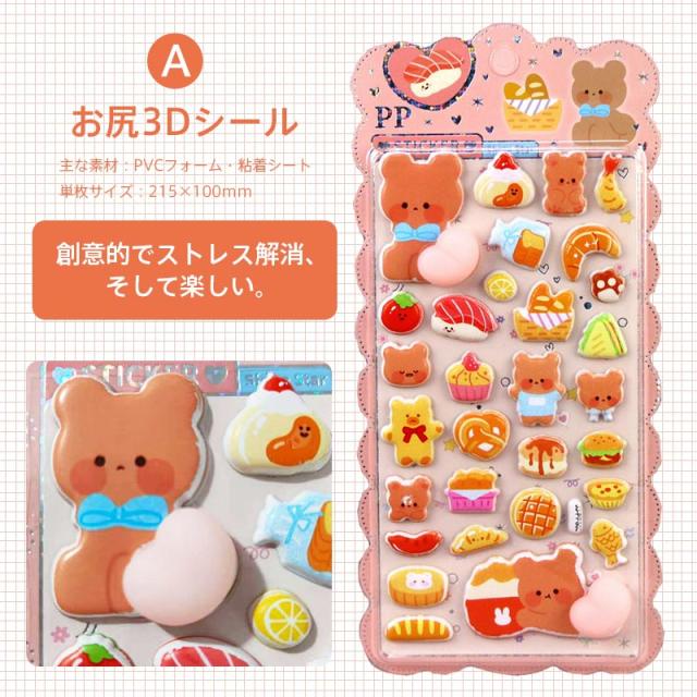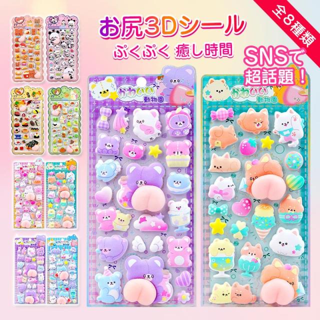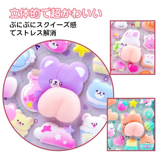 【SNSで話題のもも尻シール】お尻3Dぷくぷくシール 立体デコ キャラクター 可愛い 癒し スマホケース 手帳 ノート デコレーション Sugar Puff 4枚入 柄ランダム発送