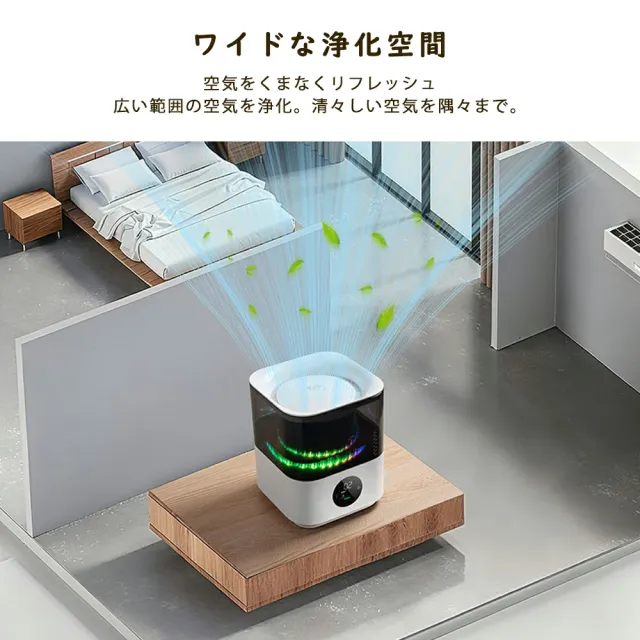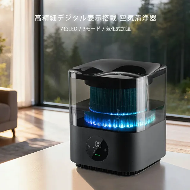 空気清浄機 卓上 空気清浄器 加湿器 加湿器付き 空気清浄 小型 コンパクト ミ二 静音 10畳 花粉運転 脱臭 除菌 お手入れ簡単 おしゃれ 部屋 省エネ 節電対策 エコ 節電 洗面所 軽量 電気 寝室 ニオイ対策 7色LED 3モード 気化式加湿 3モード切替