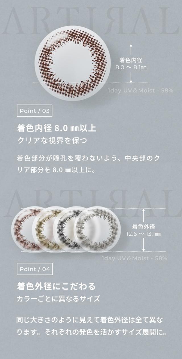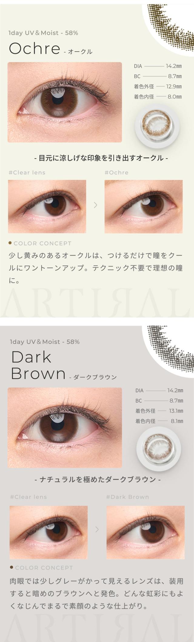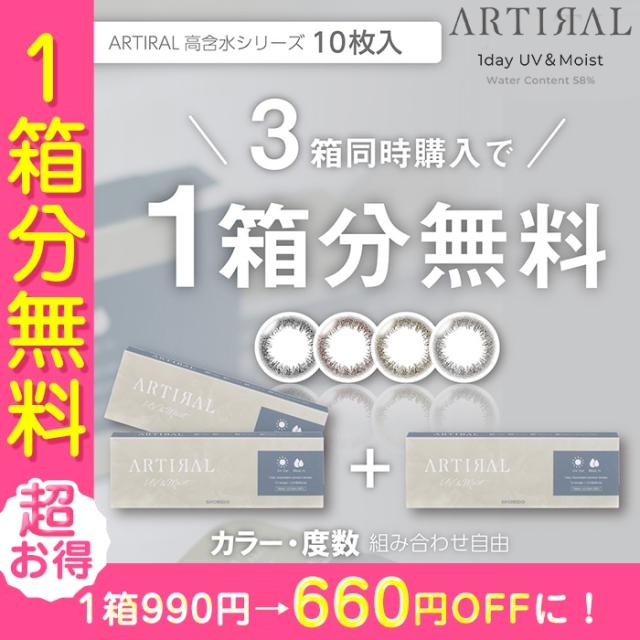 【1箱分無料クーポン3箱セット】カラコン ワンデー 度あり アーティラルワンデーUV&モイスト 1箱10枚入×2+1箱 直径14.2mm BC8.7 UVカット ブラック オークル ブラウン【送料無料】高度数 ハイパワー 大人ナチュラル 自然 高含水