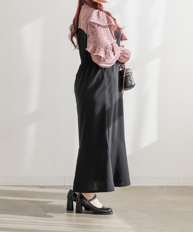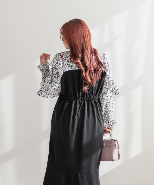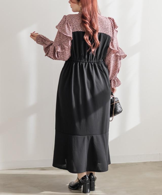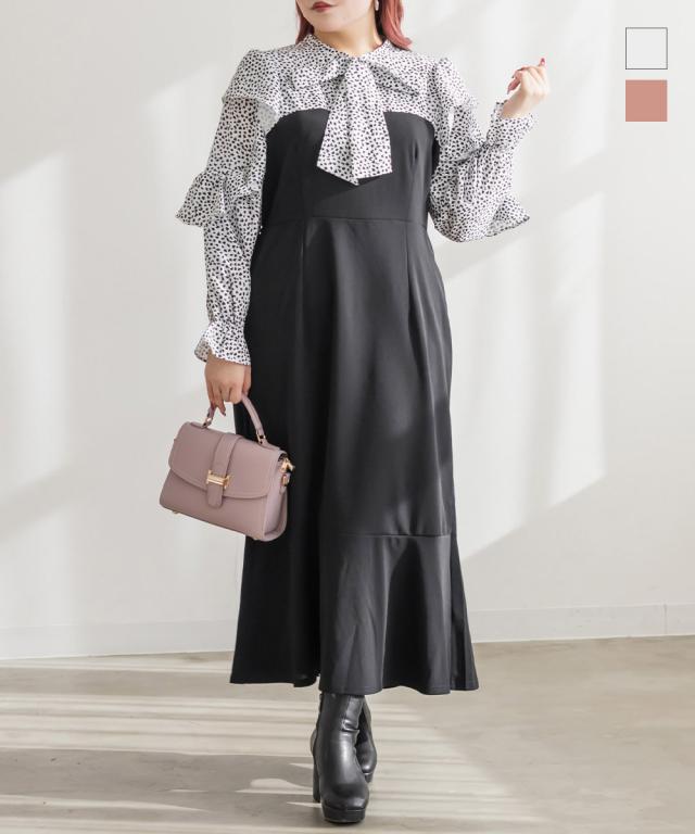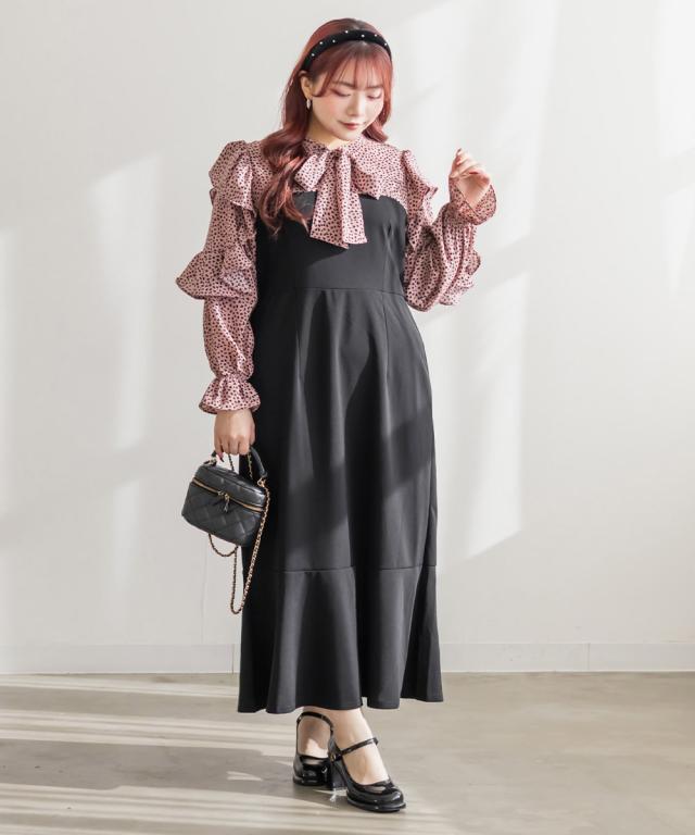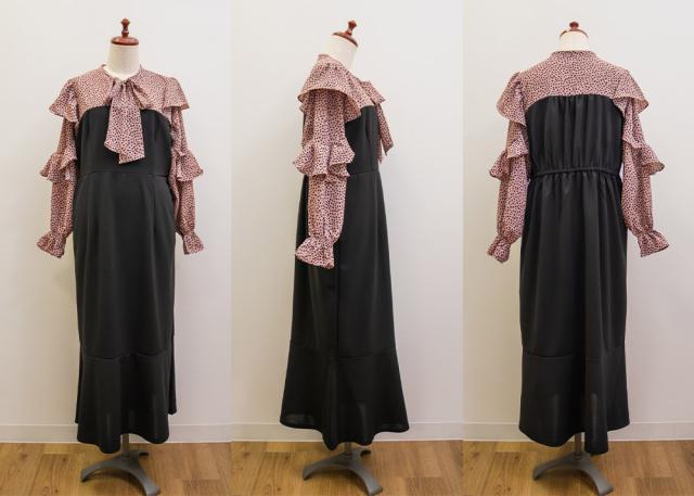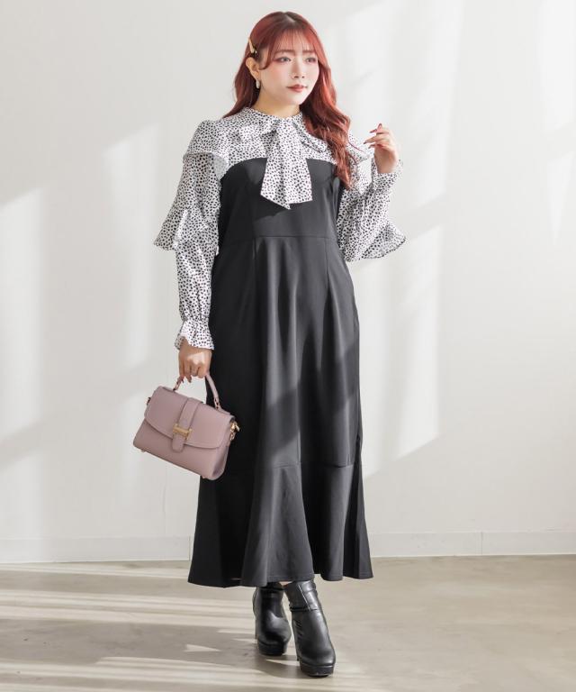 | 3Lを着てぴったりサイズでした。首まわりは自分で結べるので窮屈感がなく、ウエストは後ろゴムになっているから着心地もらくちんです!裾がマーメイドデザインになっているからすごく女性らしくスタイルアップ出来ました!ドットのようなアニマル柄がおしゃれで、バスト上切替になっていてブラウスを重ね着しているような着こなしになれるワンピースです♪寒い時期はカーディガンやアウター重ね着してもかわいいです。お出かけやデートにおすすめの1枚です! |