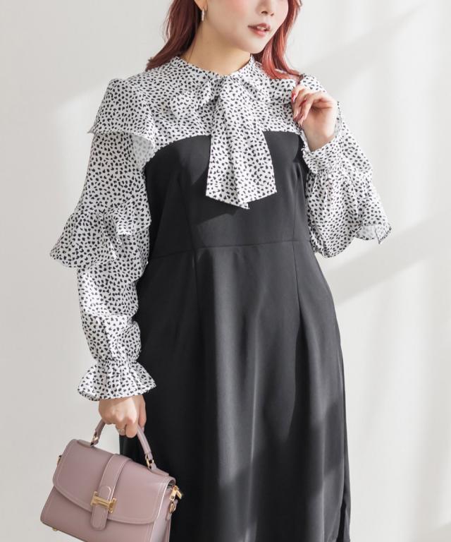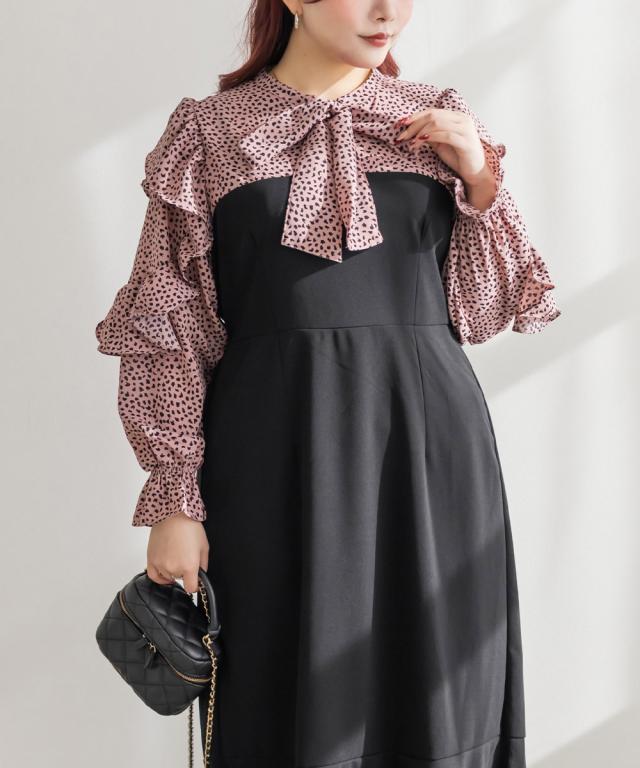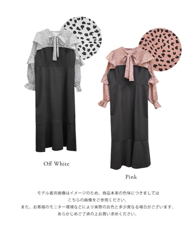 大きいサイズ/レディース/3L/4L/アニマル柄ドッキングリボンタイワンピース