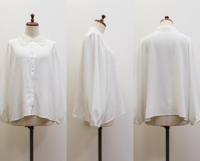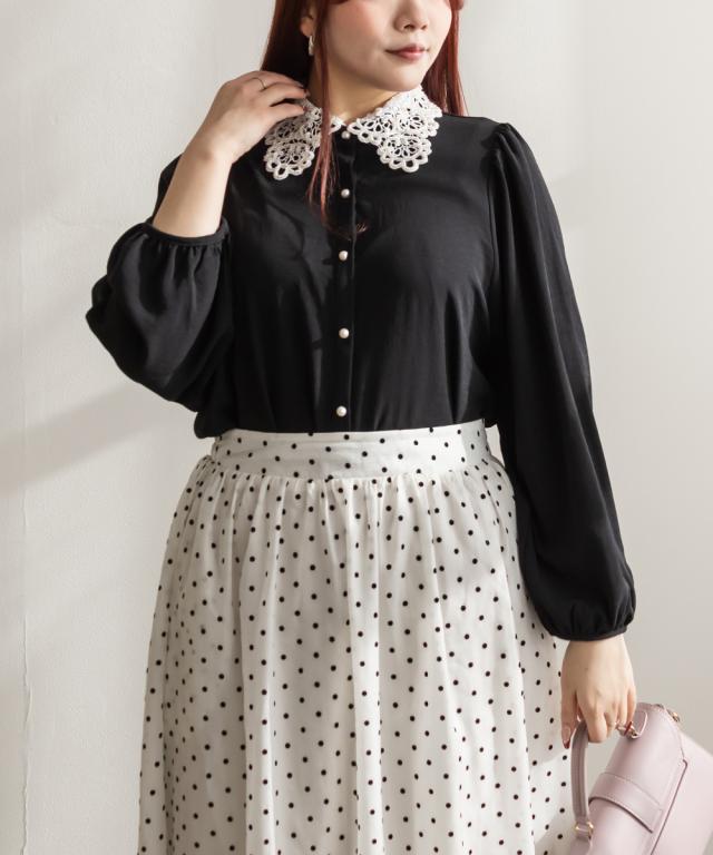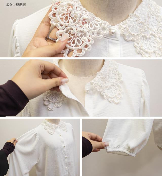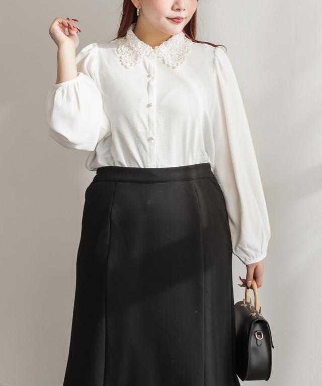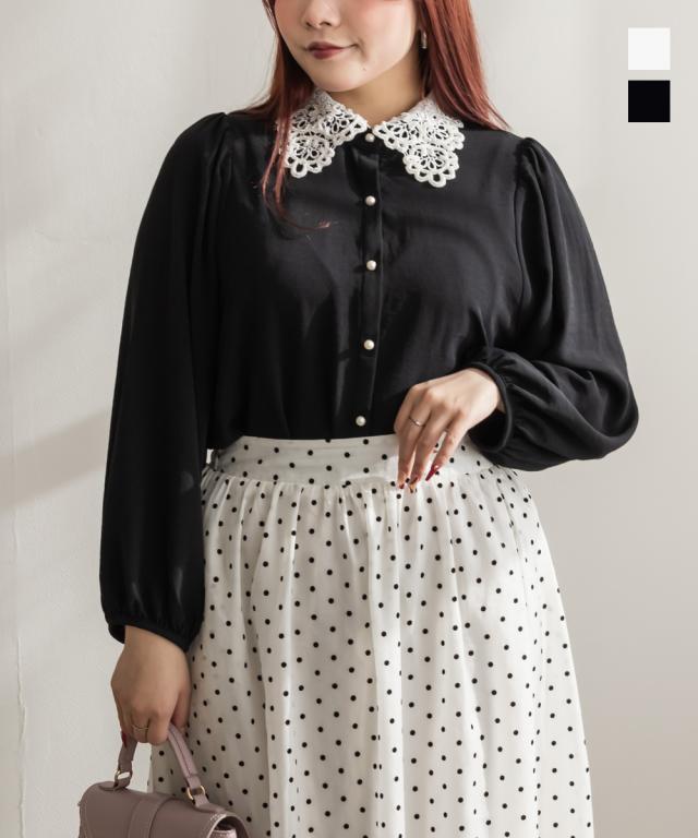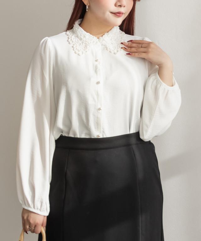 大きいサイズ/レディース/3L/4L/パール使いレース襟ブラウス
