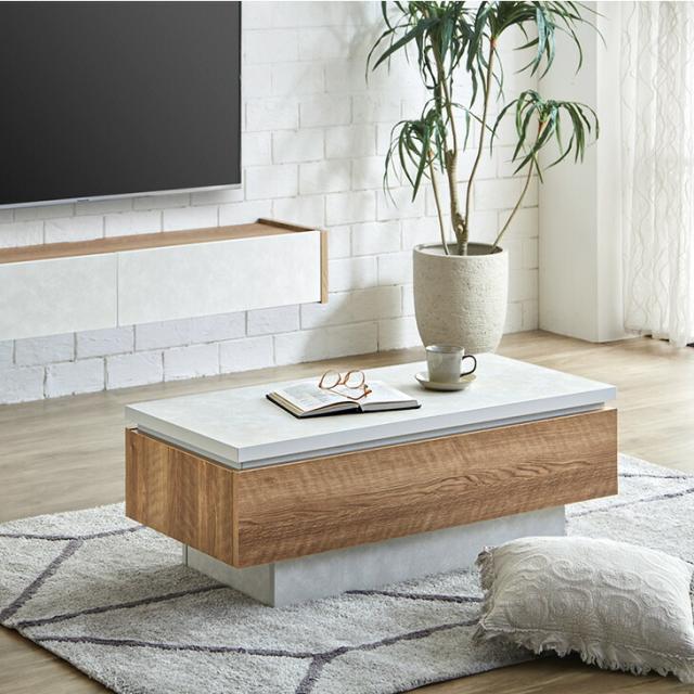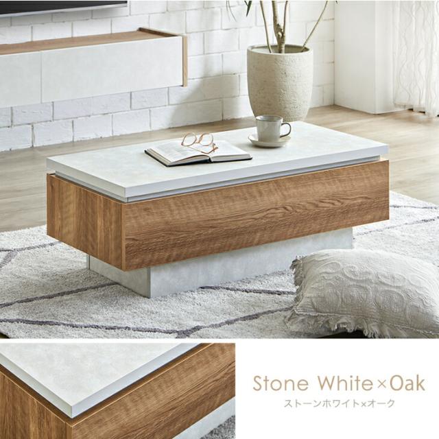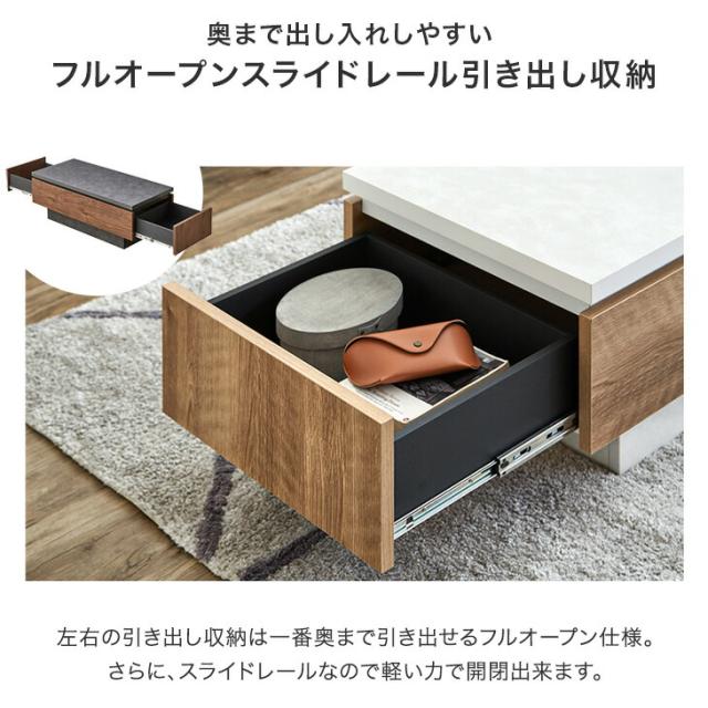 センターテーブル 幅105 完成品 日本製 引き出し付き 収納付き 引き出し リビングテーブル テーブル ソファーテーブル ローテーブル 木目調 石目調 105cm 長方形 机 ホワイト ブラック モダン 北欧【超大型】【後払/時間指定NG】