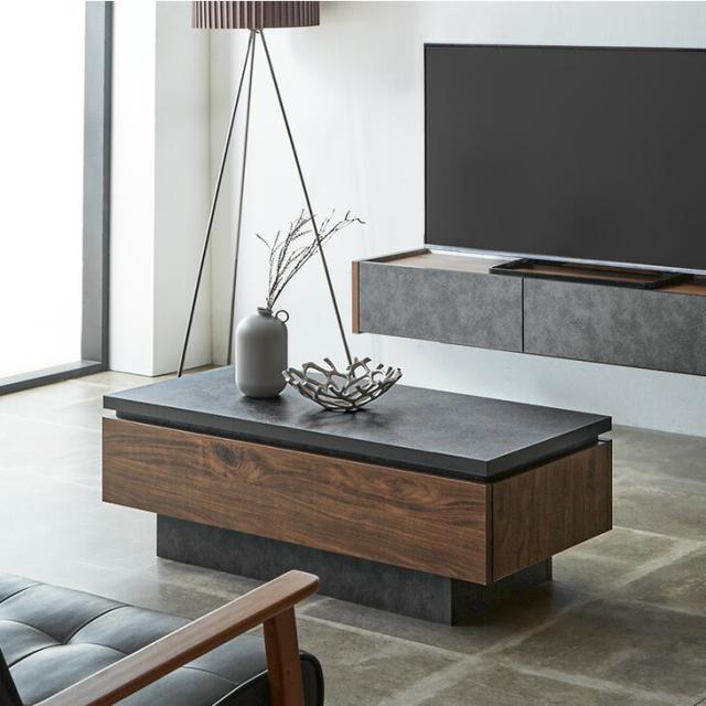 センターテーブル 幅105 完成品 国産 引き出し付き 耐熱 耐摩擦 リビングテーブル ソファテーブル ソファーテーブル ローテーブル デスク 105cm 木目調 石目調 石肌調 白 黒 おしゃれ