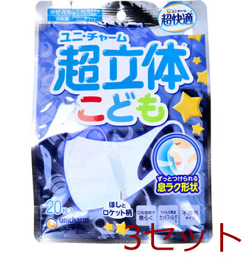 マスク 超立体マスク こども用 園児 低学年用 ホワイト 20枚入 3セット 送料無料