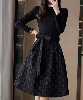 ワンピース ニットワンピースレディース千鳥柄切替秋冬