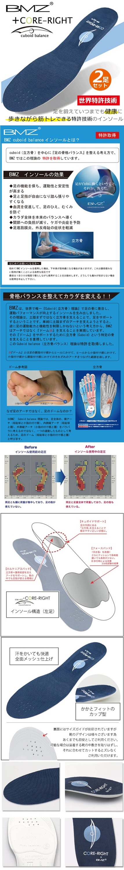 インソールの大手BMZ社監修。履いて歩くだけで、足のアーチを守り『浮き指』を改善、
