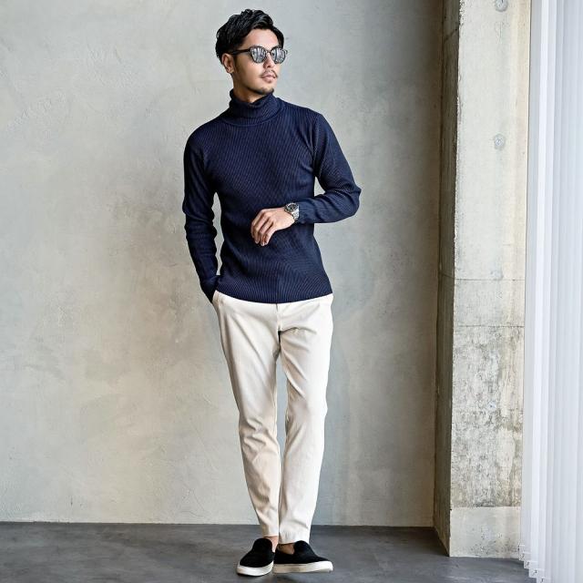 すっきりとしたラインが大人の魅力を引き立て、ジャケットやチェスターコート、ブルゾンなど幅広いアウターと相性抜群の万能タートルニットです。