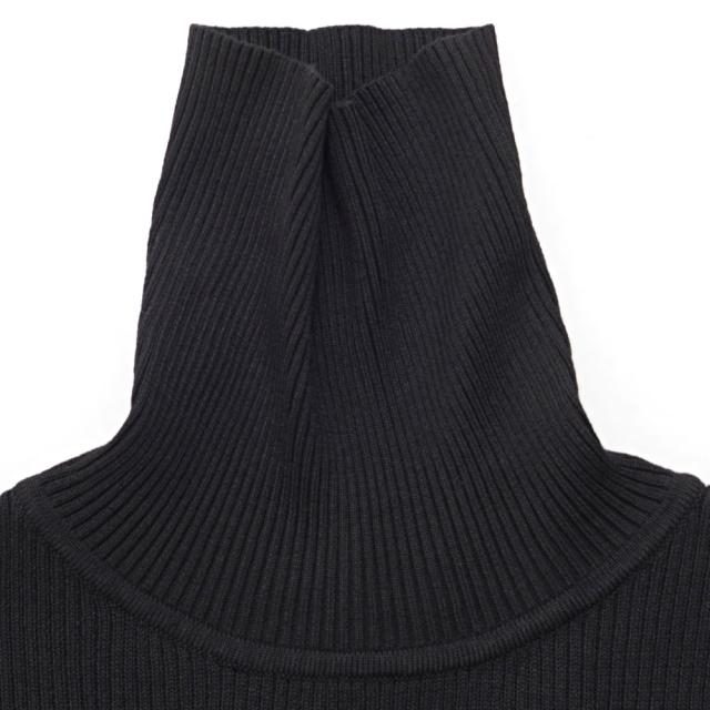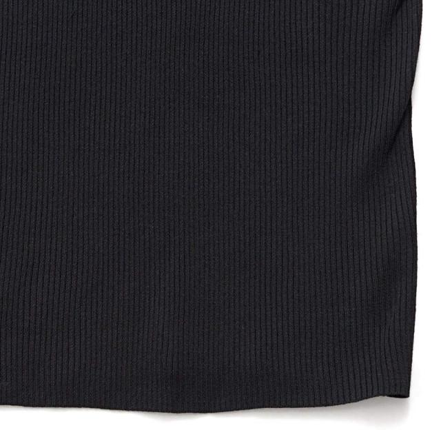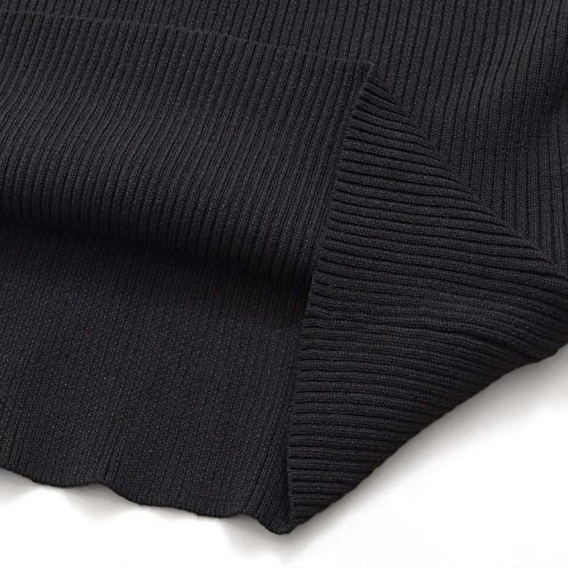 細見え効果の高い縦リブ編みを採用し、身体にほどよくフィットしながらも上品なシルエットをキープ。