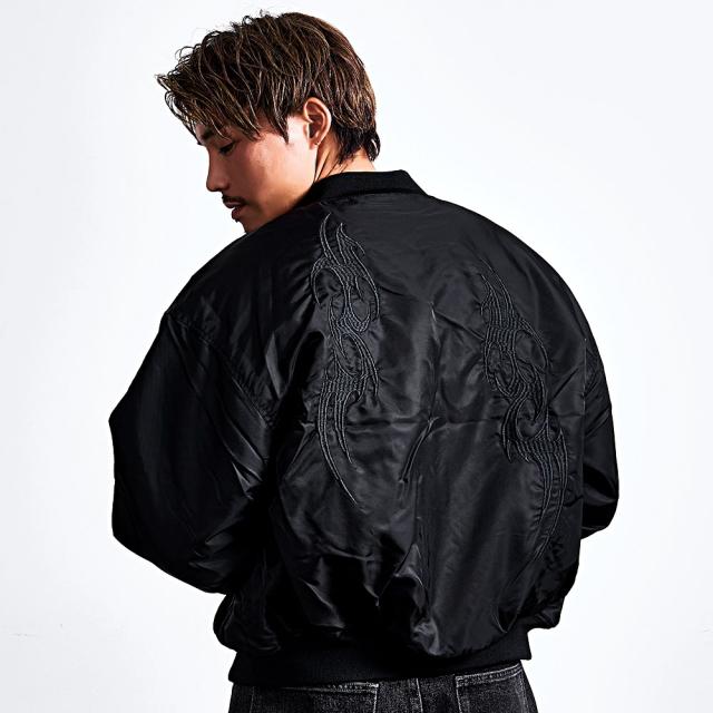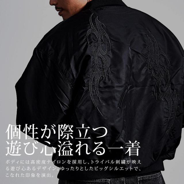 MA-1ジャケット メンズ おしゃれ MA1 ボンバージャケット ブルゾン 中綿ジャケット 中綿ブルゾン 中綿MA-1 中綿MA1 ミリタリージャケット 刺繍 トライバル ビッグシルエット オーバーサイズ 大きいサイズ ゆったり キルティング ゆったり ブラック 黒 CavariA キャバリア ブランド ユニセックス 男性 大人 秋服 冬服 ファッション 長袖 カジュアル ストリート ストリート系 ストリートファッション 韓国 韓国系 韓国ファッション 下北沢 下北系 古着 古着系 90s 90年代 2000年代 Y2K 父の日 父の日ギフト 父の日プレゼント 20代 30代 40代 50代 メンズファッション 東京 プレゼント 誕生日 記念日 贈り物 ギフト ナイロンジャケット 中綿入り 防風 防寒 保温性 ルーズフィット ワイドシルエット ドロップショルダー ダブルジップ ミリタリーコーデ配送について