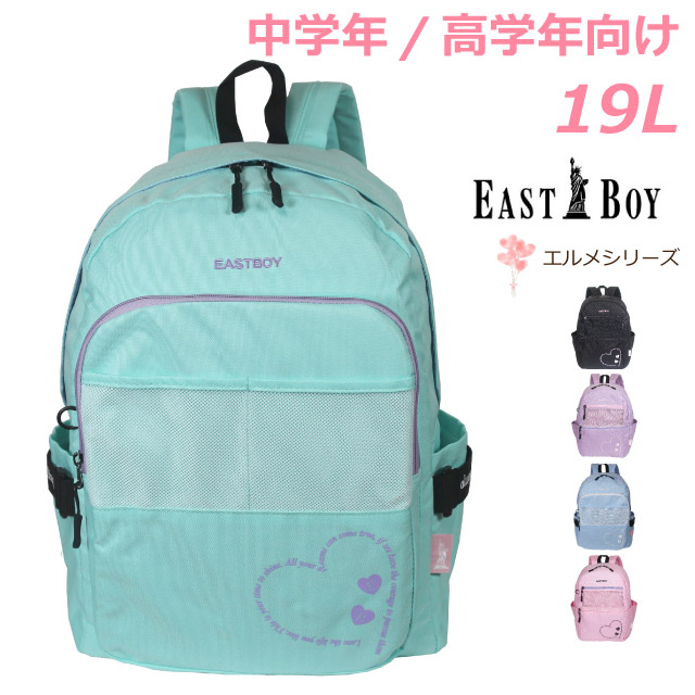 リュック キッズ 女の子 子供 ジュニア 小学生 オシャレ かわいい 19l 女子 リュックサック デイパック バックパック 小学校 小学校低学年 小学校高学年 通学 通塾 習い事 学童 遠足 修学旅行 林間学校 黒 水色 緑 ピンク 紫 イーストボーイ EAST BOY 19リットル eba98