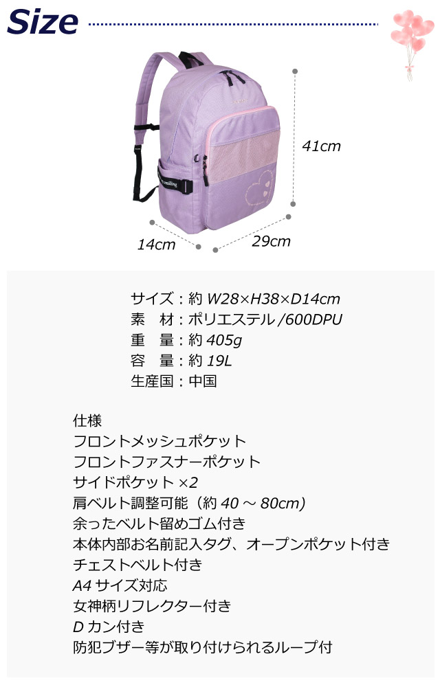 ![]() ![]() ![]() ![]() ![]() ・EAST BOY(イーストボーイ)エルメ ちょっぴりお姉さんっぽいエルメシリーズ。リュックサック 19L。小学生女子のためのカジュアルガーリーバッグ。 パステルカラーとオリジナルプリントが女の子の日常をかわいく彩ります。