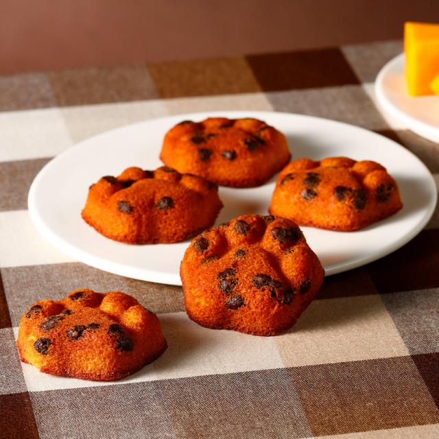 | コクのあるチェダーチーズ生地に、チョコチップを混ぜ込み焼き上げました。一口ごとに広がるチーズのコク。 塩味と甘みがクセになる、しっとり食感の大人フィナンシェです。 ※チーズパウダー中チェダー60%使用 |