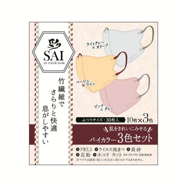 彩 saiマスク 立体 不織布 バイカラーマスク バイカラー ふつうサイズ 30枚 おしゃれ マスク
