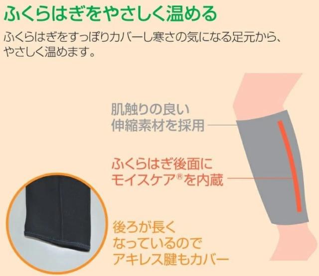 ふくらはぎをすっぽりカバーし、寒さの気になる足元からやさしく温めます。