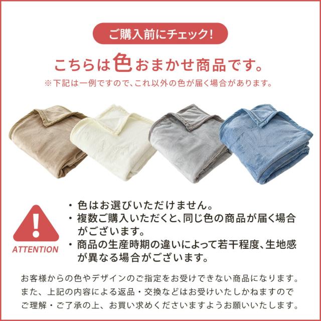 ・お財布に優しいオトクな毛布 大量に仕入れた商品を、柄・素材は当店のおまかせにし、仕分けのコスト削減をすることにより、お求めしやすい価格設定にすることができました! ・思わず触れたくなる、しっとりなめらかな肌ざわり繊細な起毛がミンクのようにスルッとなめらかで、パウダリーでリッチな肌ざわり。光沢感が上品な、お値段以上の触り心地。肌触りの気持ちよさで毛布を選びたい方におすすめです。両面起毛で熱を逃がさず、掛けた瞬間からあたたかい。 ・扱いやすい、ニューマイヤー1枚生地一枚の生地の両面を起毛させたニューマイヤー毛布。ふんわり軽く、薄手で身体に優しくフィットしてあたたかい。コンパクトに収納できる使い勝手のいい毛布です。 ・ぴったり沿って首元までぬくもりキープ沿いがよく、身体にしなやかにフィット。首元までふんわり包み込むから、暖かさを逃しません。冷え込む季節には、羽毛布団などの内側に重ねてインナーケットとして使うのもおすすめ。 ・洗濯機で手軽に洗えるご家庭で丸洗いできて、毎日清潔にお使いいただけます。ポリエステル素材なのでお洗濯しても乾きやすく、冬時期のお洗濯も気軽にできるのがポイントです。 |