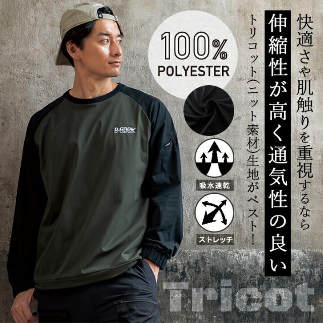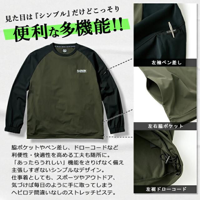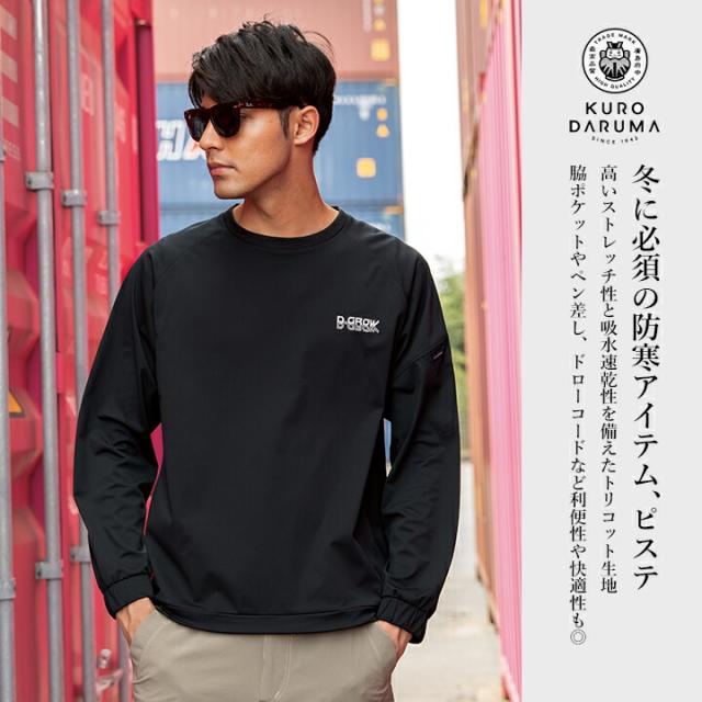 防風 防寒 シャツ ストレッチピステ 吸水速乾 作業服 DG435 D.GROW 防寒 ピステ トップス 保温 衿ジャージ 脇ポケット ドローコード ペン差し 多機能 トリコット ポリエステル 秋冬 アウトドア クロダルマ
