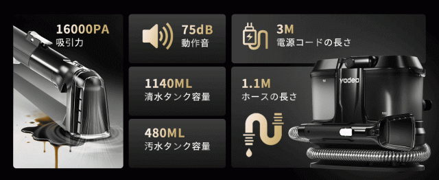 【Yadea公式】【軽量×パワフル】Yadea R-ZERO カーペットクリーナー 16000Pa吸引力 絨毯クリーナー カーペット洗浄機 車シート掃除機 ソファークリーナー 汚れ落とし ソファ洗浄 乾湿両用掃除機 マットレス/布製品/車内/シート/ラグ/ソファ/絨毯/ぬいぐるみ/掃除用品