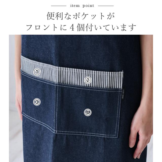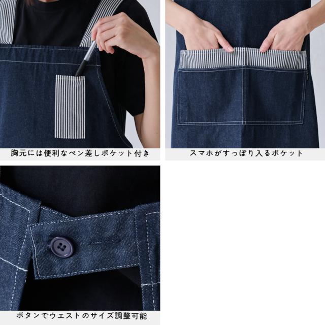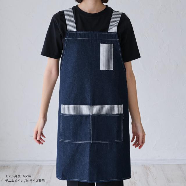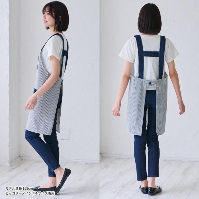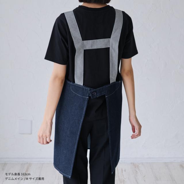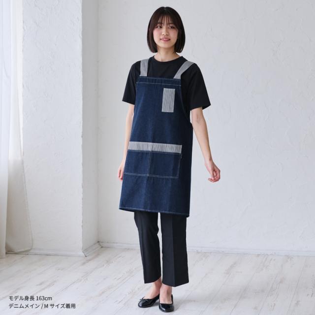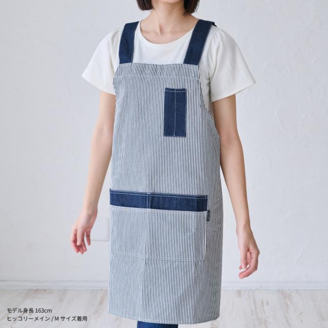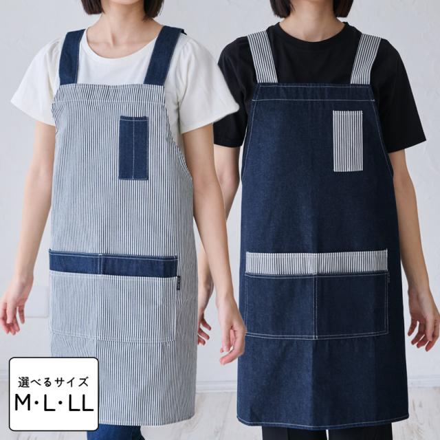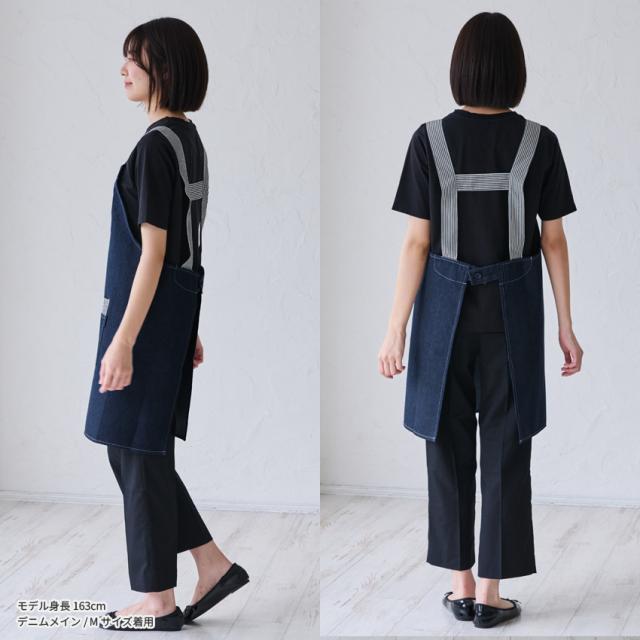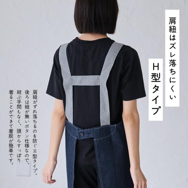 M~LLサイズ デニムH型エプロン H型 h型 エプロン ショート丈 デニム ヒッコリー 撥水 シンプル 無地 ロング ミドル 保育士 ロング ギフト おしゃれ かわいい 母の日 ゆったり