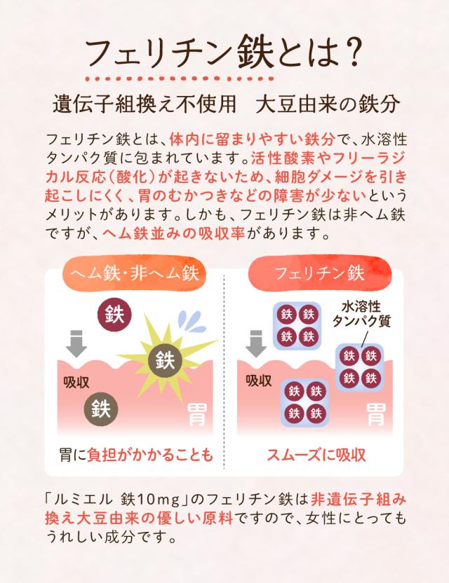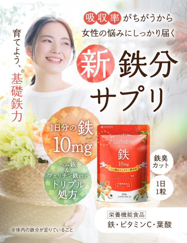 吸収率がちがうから、女性の悩みにしっかり届く新・鉄分サプリ「ルミエル 鉄分10mg」