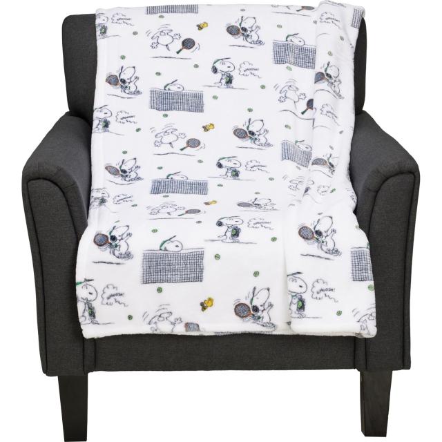 (取寄) ピーナッツ スヌーピー ザ テニス スター フリース スロー ブランケット - 60x70インチ Peanuts Snoopy the Tennis Star Fleece Throw Blanket - 60x70” White