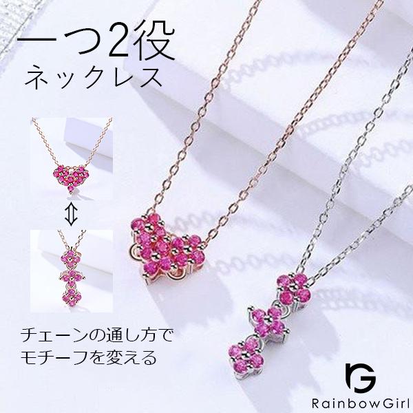 ネックレス レディース ハート 四つ葉のクローバー 2WAY ルビー/シルバー925 プラチナ仕上げ/女性 妻 彼女 娘 誕生日 母の日 人気