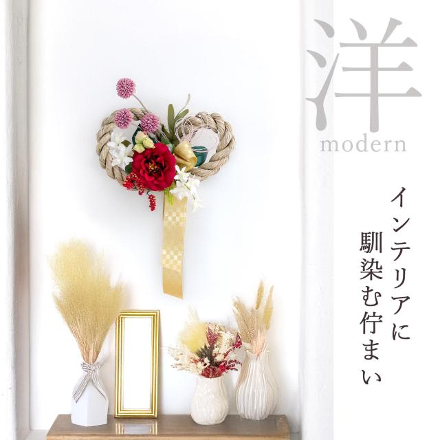 しめ縄 造花 掛け型 おしゃれ モダン 注連縄 しめ縄リース お正月飾り 水引 ギフト