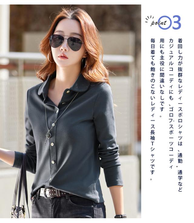 ポロシャツ レディース 長袖 襟付き tシャツ スポーツ お洒落 ゴルフウエアー テニスウェア ボウリングウェア トップス 綿 カットソー きれいめ