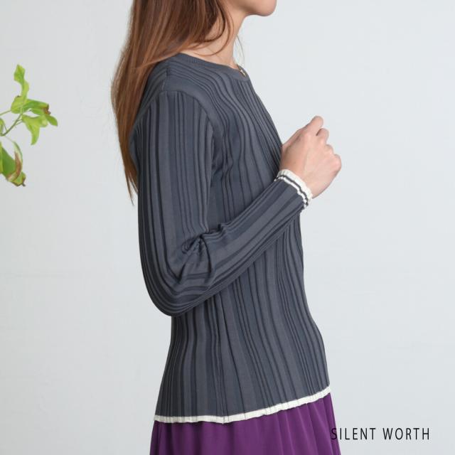 裾と袖のラインデザインがアクセントのトップス。シンプルだからパンツにもスカートにも合わせやすくて普段つかいに大活躍アイテム。