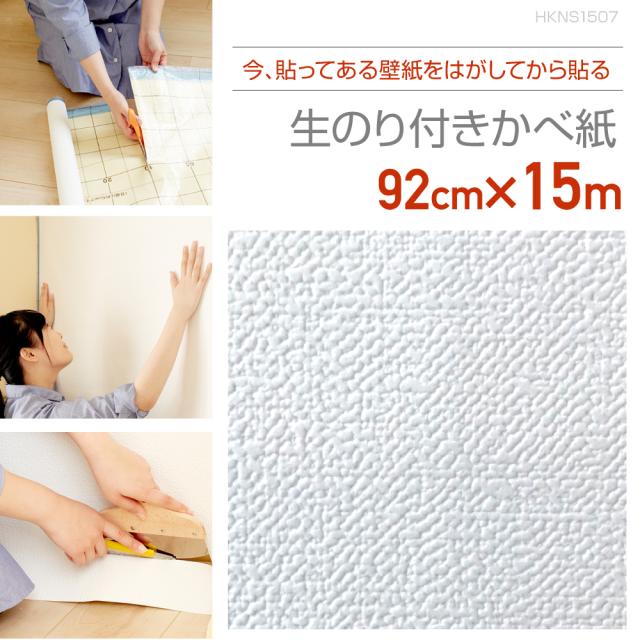 壁紙 アウトレット のり付き のり付壁紙 メーカー直営店 壁紙をはがしてから貼る生のり付き壁紙 92cm×15m きめ細やかな織物調のホワイト HKNS1507