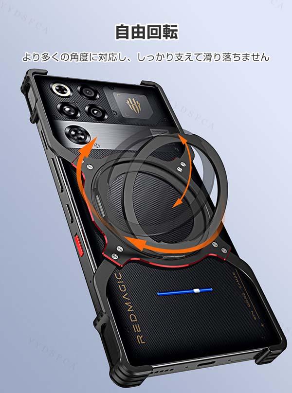ヌビア Nubia REDMAGIC 11 Pro/11 Pro+ ケース カバー CASE アルミバンパーケース 枠 フレーム 軽量 持ちやすい おしゃれ スタンド機能付き 360度回転 簡単分解 放熱性 金属 マグネット充電 高級感があふれ 便利 実用 人気 創意 強化ガラスフィルム おまけ付き