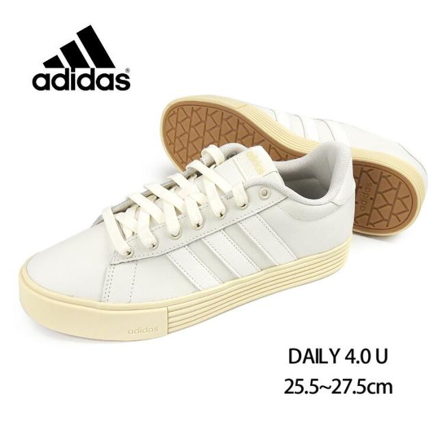 アディダス デイリー 4.0 U ローカット スニーカー シューズ ユニセックス 25.5 26 26.5 27 27.5 オフホワイト JP5279 adidas DAILY 4.0 U メンズ レディース 男性 紳士 女性 婦人 レザー レースアップ 紐 ひも 白 OWHITE/OWHITE/WARVAN【箱アウトレット】 sh2437