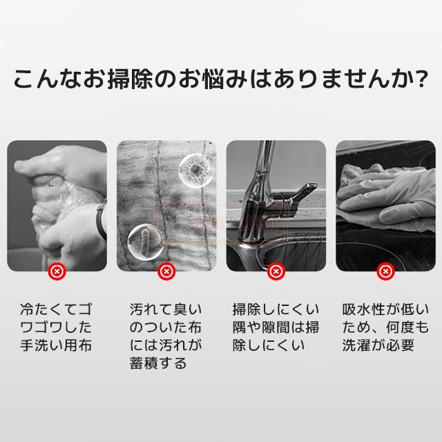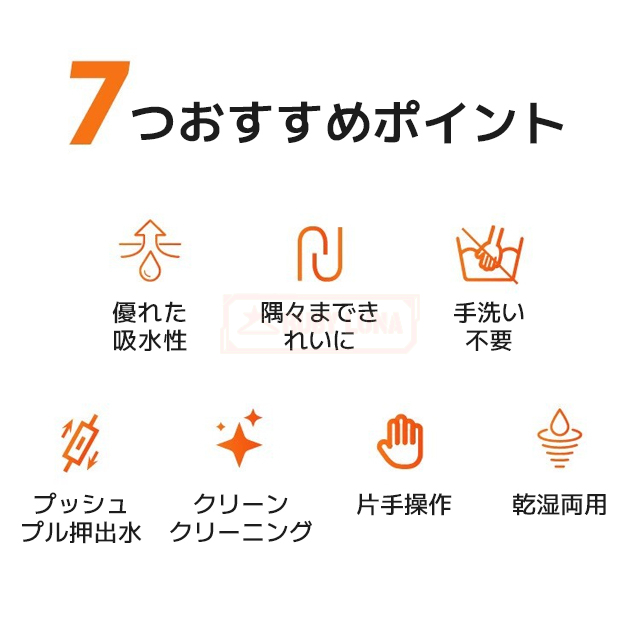 | 【床面保護】 | ◆スポンジの素材はpvaを採用した耐摩耗性、通気性、耐酸性に非常に優れ、木製の床面を傷つけずお掃除ができます。PVA作ったスボンジは吸水性も柔軟性も非常に優れて、使用面にしっかりフィットし水をすばやくグングン吸収します。 |