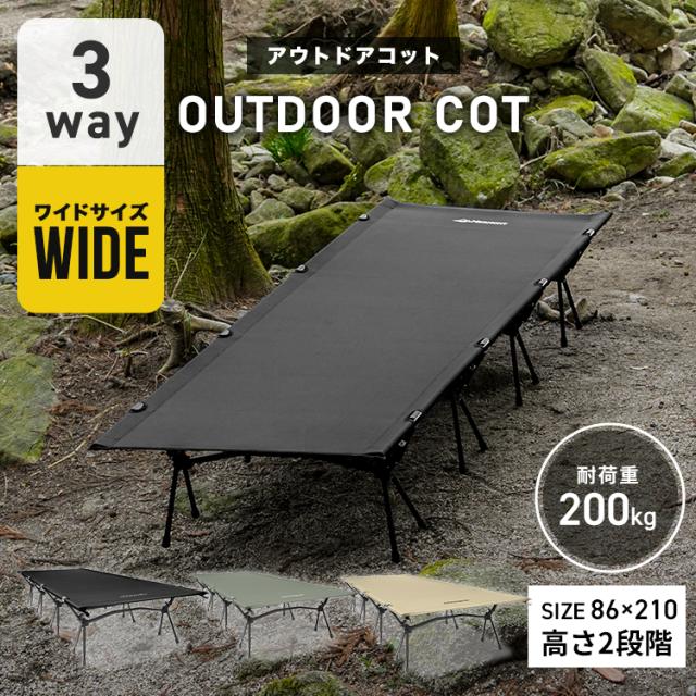 アウトドアコット コット ワイド 耐荷重200kg キャンプベッド 折りたたみ 3WAY 高さ2段階 ハイ ロー 軽量 フォールディングコット 簡易ベッド 防災 ベンチ チェア MERMONT 送料無料