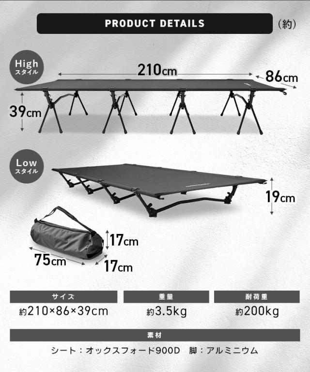 コット フォールディングコット アウトドアコット キャンプコット コットベッド アウトドアベッド キャンピングベッド キャンプ アウトドア キャンプ用品 アウトドア用品 キャンプ寝具 アウトドア寝具 野外寝具 折りたたみベッド 折り畳み 折りたたみ式ベッド 簡易ベッド 仮眠ベッド コット 折りたたみ 頑丈コット 丈夫なコット 高耐久 耐荷重200kg ワイドサイズ 大型 高さ調整コット 高さ調節可能 2段階調整 ハイタイプ ロータイプ ハイロー切替 3WAY 2WAY ベッド チェア ベンチ ローチェア アウトドアチェア 軽量コット コンパクト収納 省スペース 収納バッグ付き 持ち運び簡単 組み立て簡単 設営簡単 ワンタッチ 工具不要 キャンプマット対応 防災用ベッド 防災グッズ 災害対策 避難所用 簡易寝具 非常用ベッド 車中泊 車中泊ベッド 車中泊マット 車中泊キャンプ ソロキャンプ デュオキャンプ ファミリーキャンプ 室内 屋内屋外兼用 メンズ レディース 男性用 女性用 人気 おすすめ 売れ筋 定番 ランキング 通販 新商品 ギフト プレゼント 誕生日プレゼント 父の日 母の日 敬老の日 引越し祝い 新生活 お祝い MERMONT メルモント WEIMALL ウェイモール 送料無料