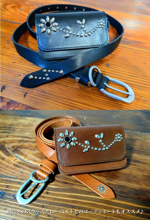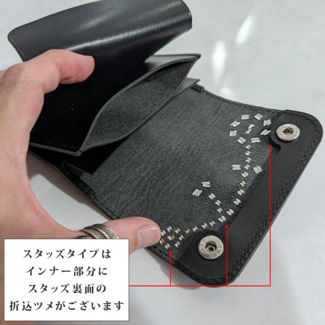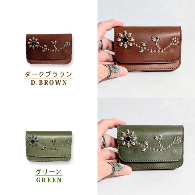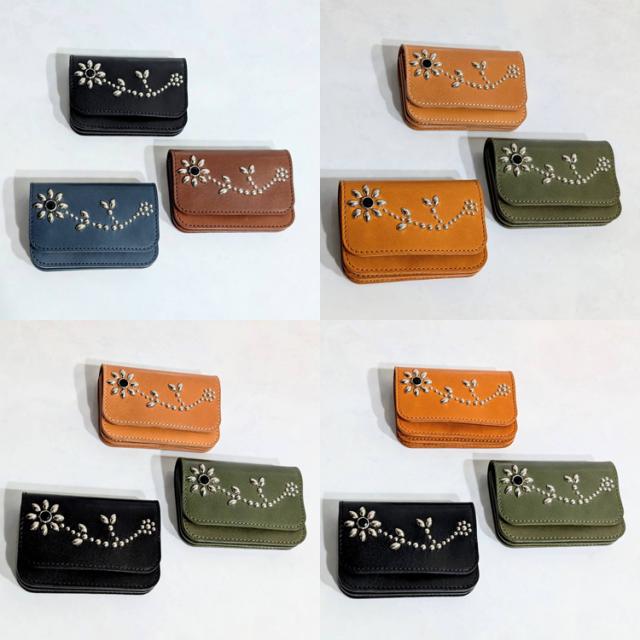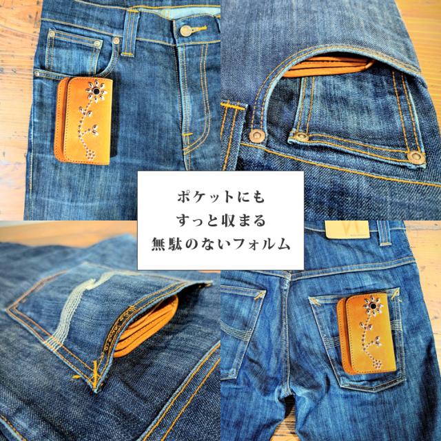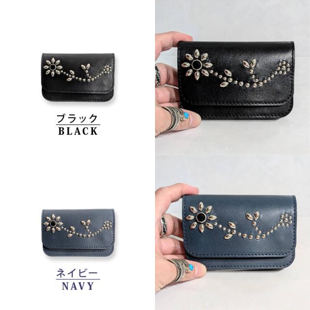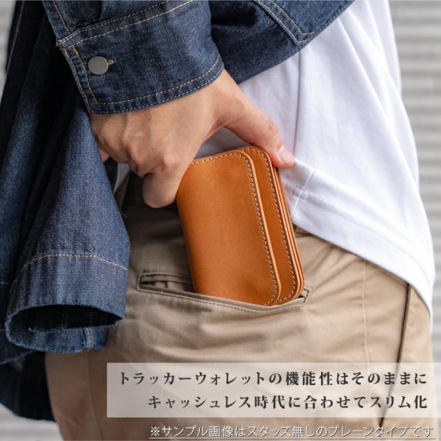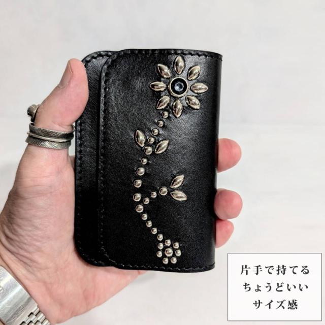 日本製 栃木レザー 正規品 フラワー スタッズ ショート トラッカーウォレット ジーンズ 本革 牛革 財布 スリム ミニ 経年変化 コンパクト 二つ折り カード収納 小銭入れ トラッカー ウォレット 札入れ アンブレラ 271ts-700-lw