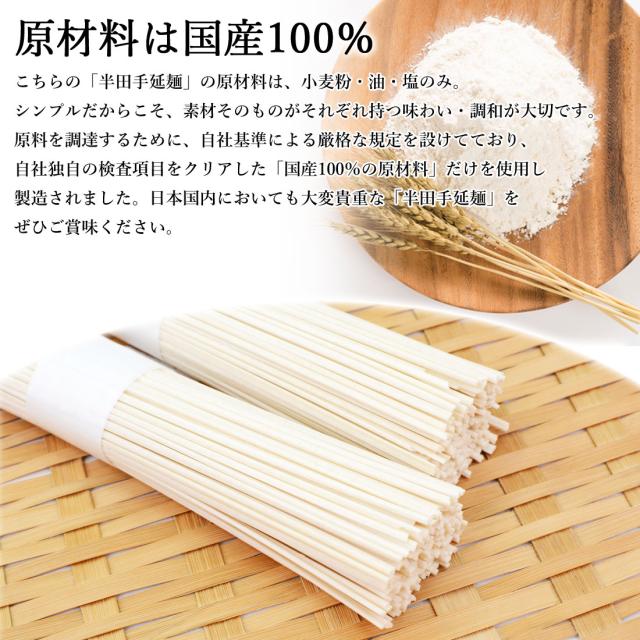 質の高い手延麺を作るには、グルテン量と質が麺づくりに適したオーストラリア産の小麦を使うのが一般的で、国産小麦を使用した麺は大変貴重なものとなっています。