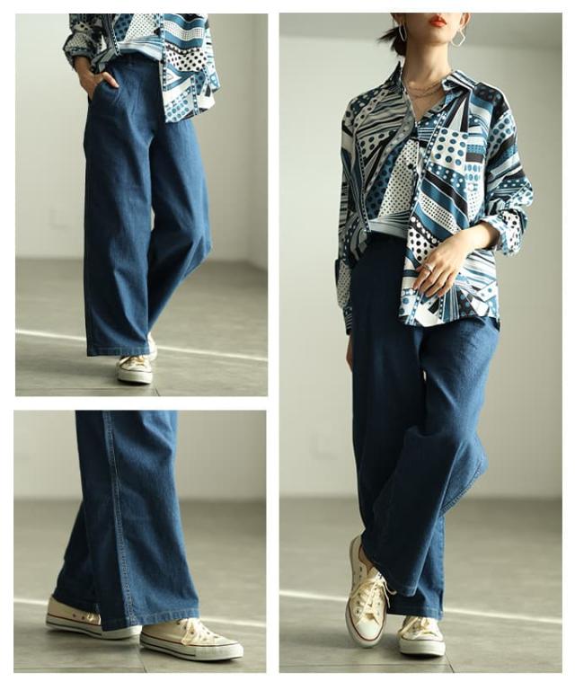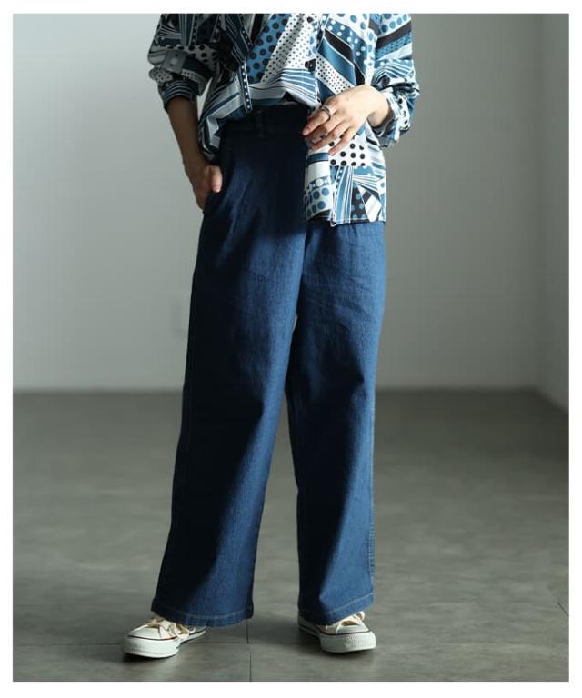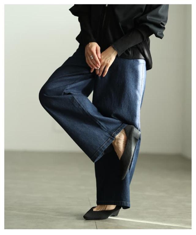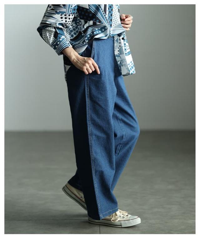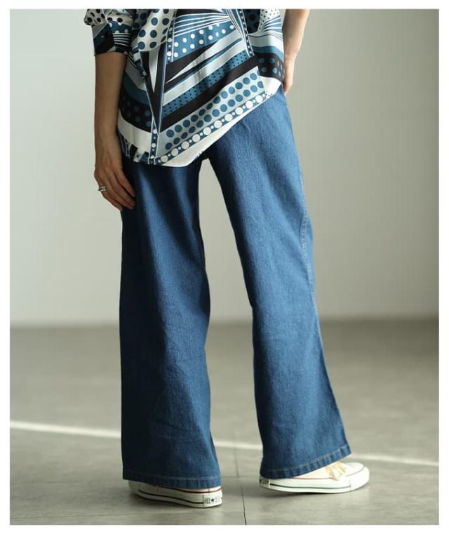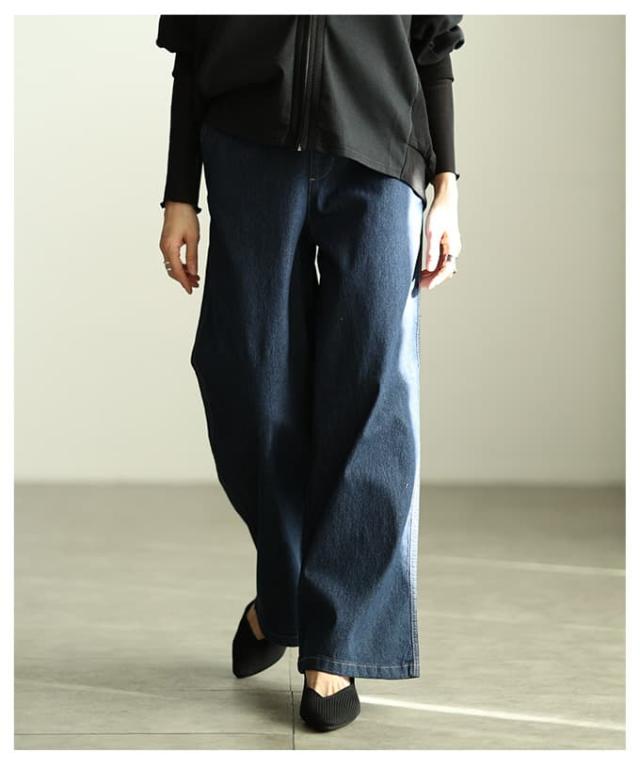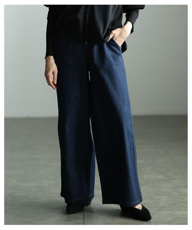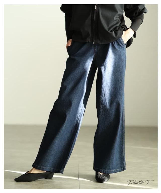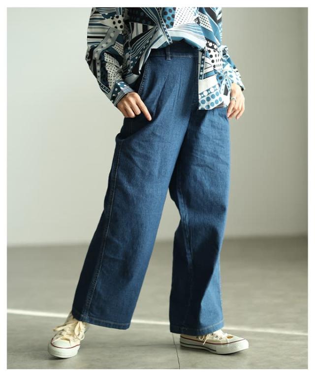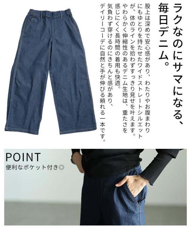 冬新作 デイリーに頼れるイージーワイドデニムパンツ レディース ボトムス パンツ デニム ロング カジュアル シンプル 体型カバー 春 秋 冬 春服 秋服 冬服 30代 40代 50代 60代 アラモード alamode otona 大人 cawaii 可愛い 洋服 かわいい服 almam-32822