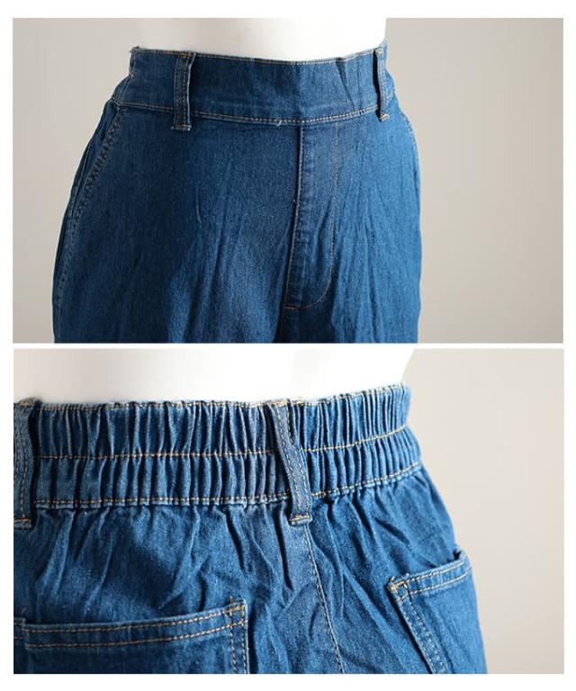 特徴: 伸縮性 無地 デニム 後ろゴム