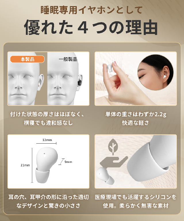 横向寝(よこがりね)専用|快眠サポート 超薄型 睡眠用イヤホン 痛くない 圧迫感ゼロ設計で就寝時の耳の痛みを解消 外部ノイズ遮音 Bluetooth 6.0 超小型 ミニサイズ 左右分離型|iPhone/Android対応 片耳・両耳使用可 長続き充電 Type-C