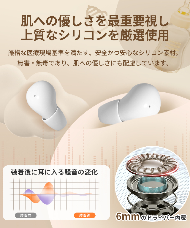 【ソフトなシリコンイヤーチップ】この製品は非常に柔らかい抗菌性のあるイヤーチップを使用しています。様々なシリコン材料を実験し比較した結果、食品グレードの柔らかく抗菌性のあるシリコン材料を選びました。使用時により衛生的で、装着時の違和感が軽減され、長時間の装着でも疲労を感じません。
